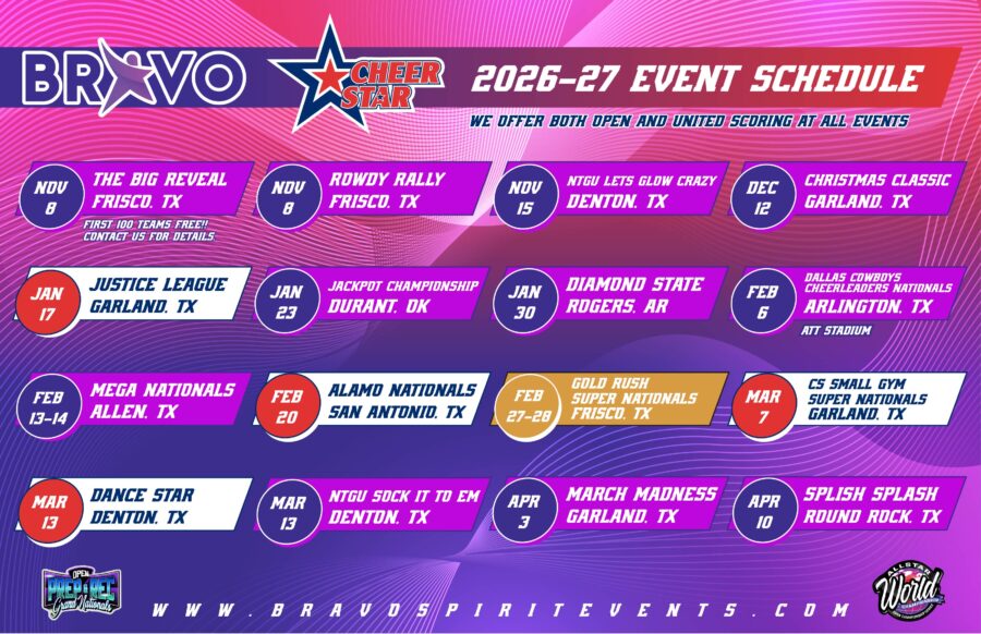 produce high quality cheer competitions in Texas, Oklahoma and Arkansas. We can’t wait to see you & your teams at our events!
